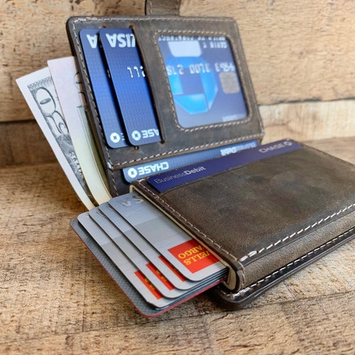 Antic Mocha Leather Rfid Blocking Wallet Card Holder Etsy